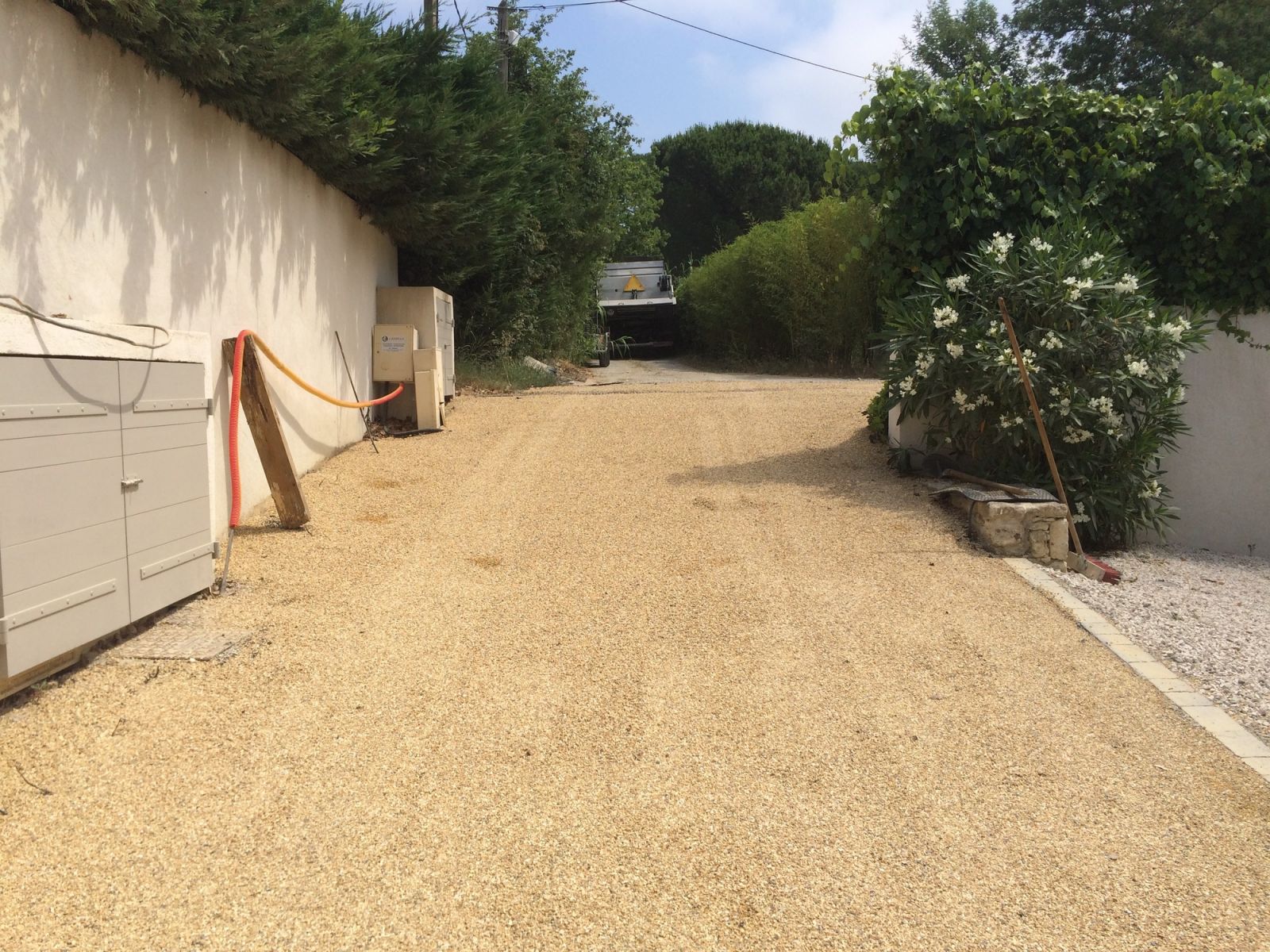 Lors de ce chantier, nos clients ont choisi des graviers jaunes, pour donner un aspect chaleureux qui va bien avec le paysage provençal.