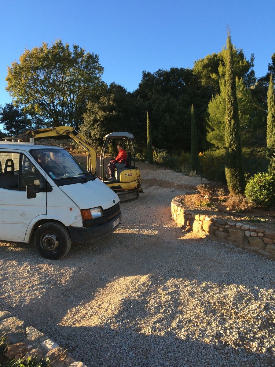 Pour les terrains en pente, comme dans ce projet à Puyloubier, il permet de se déplacer facilement et en toute sécurité. De plus, comme il existe beaucoup de couleurs et de types de graviers différents, chaque projet peut être personnalisé selon les goûts et les contraintes du terrain. Les particuliers et les professionnels aiment son aspect naturel et le peu d'entretien qu'il demande.