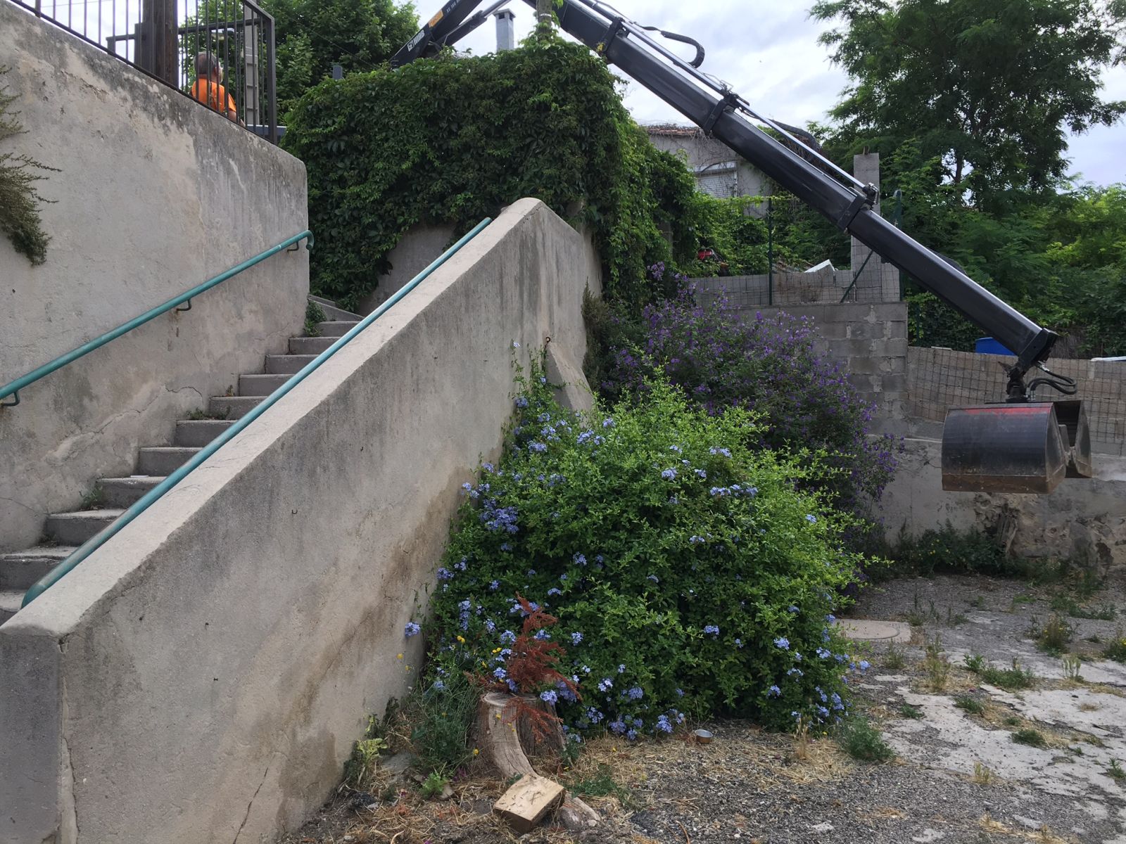 Ce chantier était particulier, dans le sens où il n'y avait aucun accés pour les engins, il a donc fallu utiliser un camion grue pour grutter l'ensemble du matériel et des matériaux.