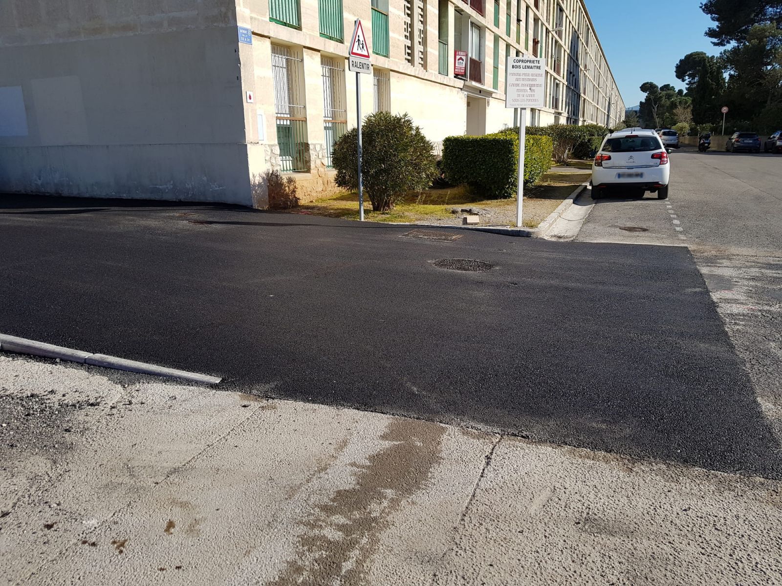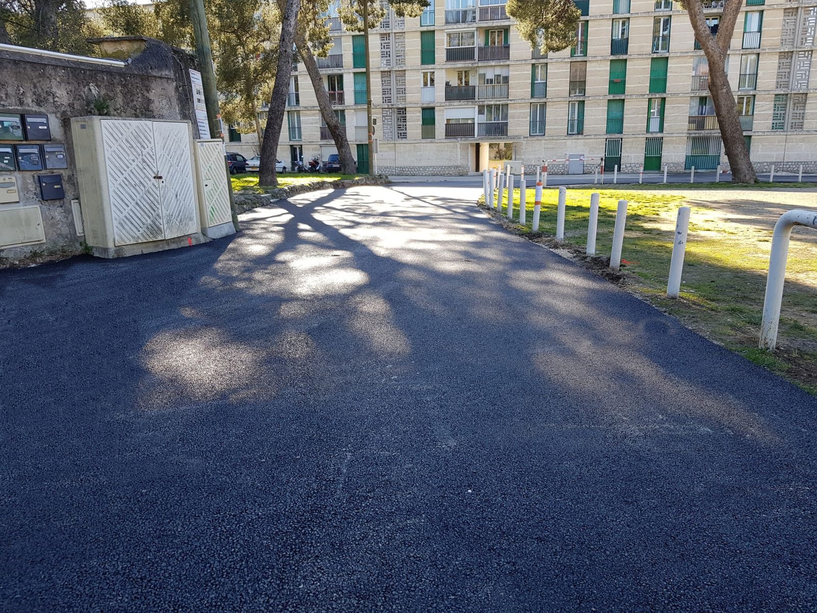 Ce projet consistait en la réfection de la voie d’accès en enrobé menant de la place située à l’avant des bâtiments vers l’impasse située au fond de la copropriété à Marseille.