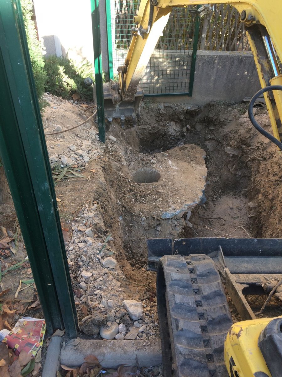 Puis nous avons réalisé un terrassement, et la démolition du regard en béton existant, avec évacuation en décharge des gravats.