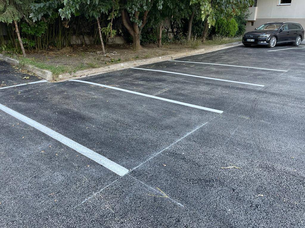 Réalisation d'un parking en enrobé noir et traçage de place de stationnement dans une copropriété à Aubagne dans les Bouches du Rhône